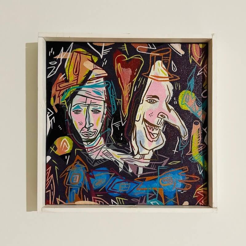 Questa è la prima della serie e rappresenta due figure grottesche. Ricci ha confessato che in occasione della mostra a Mezzago si è chiesto come mai dipinga spesso due figure e si è dato questa risposta: non riusciamo a definirci senza l’altro. Si scopre chi si è in relazione all’altro, comunicando con un’altra persona. La dualità è per lui il mezzo per conoscere se stessi.