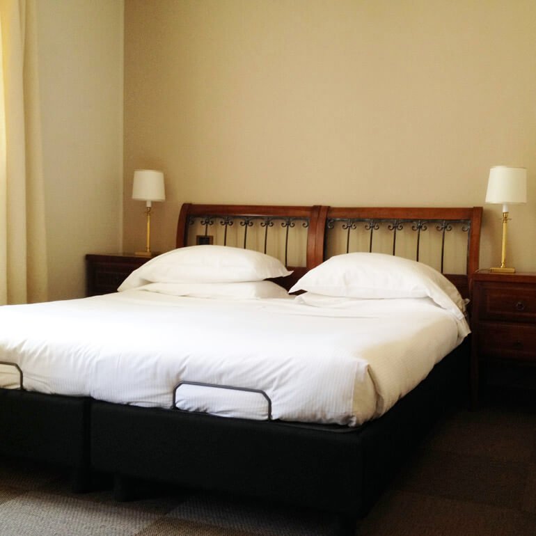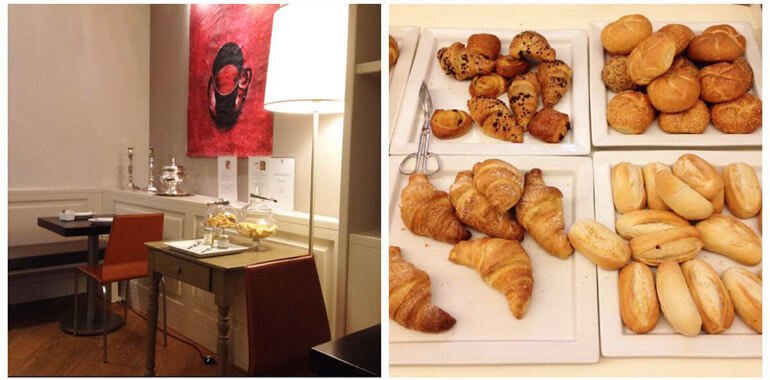 In tutte e tre le occasioni ho soggiornato in camere ampie e pulite, con vasca dotata di idromassaggio (particolarmente apprezzata dal figliolo che però avrebbe preferito tornare nella “camera di Heidi”, ovvero in quella all’ultimo piano, con il soffitto a spiovente effetto baita). Il buffet della colazione è ricco e presenta prodotti freschi, con una piccola sezione riservata a quelli del territorio. Conegliano è sulla strada del prosecco (lo si intuisce dalle vigne che costeggiano le strade, numerose come gli autovelox in postazione fissa…) e se non è salutare iniziare la giornata con un calice di vino, si può comunque assaggiare l’ottima marmellata al prosecco, con cui accompagnare i “bibanesi” (piccoli grissini) o la “fregolotta” (torta simile alla sbrisolona mantovana). In un angolo della sala campeggiano gli autografi degli ospiti illustri: molti del mondo dello spettacolo, sicuramente di passaggio durante una tournée. Per quel che mi riguarda non resta che aspettare la prossima mostra a Palazzo Sarcinelli.