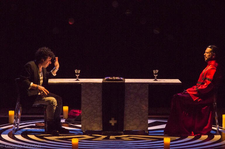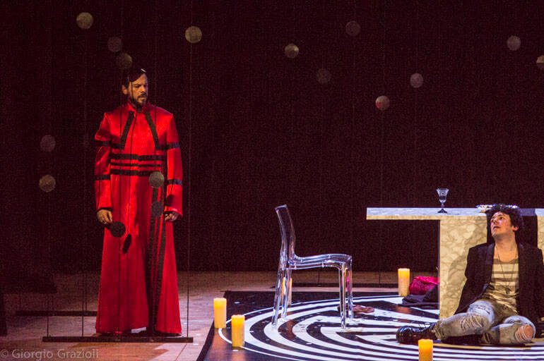 C’è molto Dostoevskij in questo allestimento di Oliva e Manni. La necessità del male, di un Giuda che interpreti il ruolo di “strumento” della rivelazione divina, dell’infinita pochezza e insieme infinita grandezza dell’anima umana… I grandi quesiti scagliati sul palco come le monete del tradimento rimandano direttamente alle pagine più elevate e intense dei Fratelli Karamazov: “Che se ne farà il popolo di tutta questa libertà?! Che diritto hai di fare questa rivelazione?!”, chiede sgomento Salieri a Mozart. Sono le stesse domande poste a Cristo dal Grande Inquisitore. Non avranno risposta. Per fortuna, però, abbiamo la musica di Mozart.