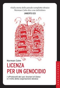Ricordava giorni fa Sergio Luzzatto in un articolo sulla Sindone, come studiare il falso per uno storico sia importante almeno quanto occuparsi del vero. Le bufale che creano opinione (di più: mitologie) non sono meno determinanti dei fatti veri nelle vicende di un mondo, di un tempo storico. I danni che hanno fatto I protocolli dei savi anziani di Sion, per esempio, sono noti (anche se non è certo quantificabile la portata: l’antisemitismo è faccenda secolare). Licenza per un genocidio è ll libro decisivo sull’argomento (lo sostiene uno che se ne intende – anche di plagi… – Umberto Eco). Lo ha scritto mezzo secolo fa lo studioso inglese Norman Cohn, e dopo un’edizione einaudiana del 1969 ora torna finalmente in libreria per Castelvecchi.