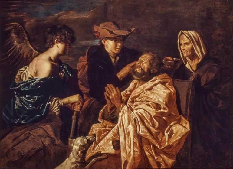 Strano pittore l’olandese Matthias Stomer. Nato forse ad Amersfoort nei dintorni di Utrecht in un anno imprecisato degli inizi del XVII secolo che gli storici dell’arte individuano nel 1600, studiò da caravaggesco in patria ma poi asciugò i pennelli al sole del Bel Paese scendendo sempre più sud, da Roma a Napoli e infine in Sicilia, dove morì attorno al 1650. Il lungo periodo trascorso in Italia giustifica la sua presenza (unico straniero) nella sala dei caravaggeschi del Musée Fesch di Ajaccio, dove è esposta la tela del Sacrificio di Isacco. Il fanciullo vi appare in uno stato di catalessi, per nulla agitato. Molto più preoccupato di lui è l’angelo, mentre l’ariete ha lo sguardo rassegnato di chi sa già come andrà a finire.