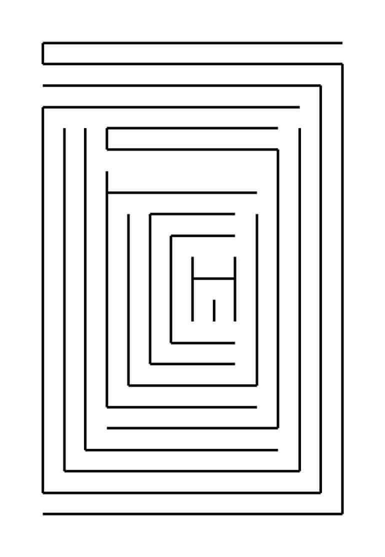 In questo caso uno solo dei quattro ingressi porta alla lettera centrale (il Minotauro? il Tesoro?) Lascio al diretto interessato la decisione di cercare metodicamente la via oppure di lasciarsi perdere nel percorso…