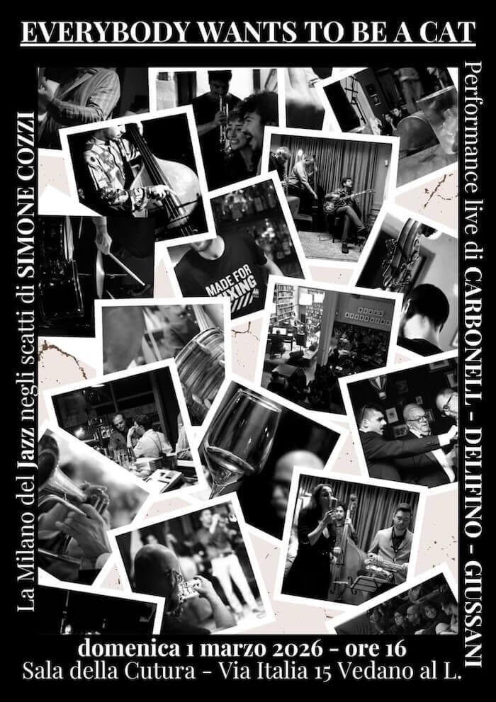 Il titolo dell’esposizione di miei scatti che il Circolo Culturale Don Primo Mazzolari mi ha chiesto di allestire, a cura della Presidentessa Anna Pellegrino e col patrocinio del Comune di Vedano al Lambro, (Vedano al Lambro, Sala della Cultura – 1 marzo 2026, dalle ore 16:00) nasce da lì: da quell’eco di libertà e di improvvisazione che attraversa le notti dei musicisti, dei cat per l’appunto.