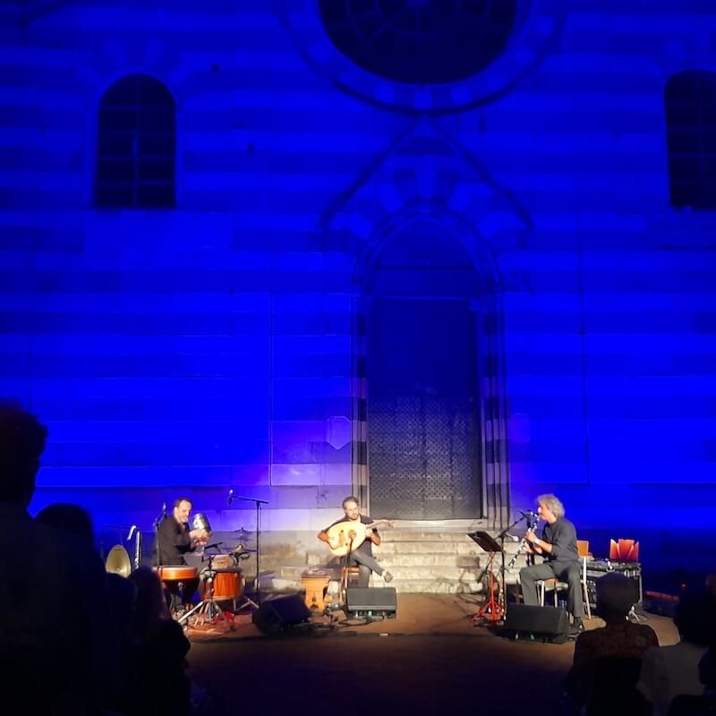 10. Saltando la cena e camminando a passo spedito ho coperto in pochi minuti il chilometro di distanza che separa Palazzo Reale da piazza san Matteo, dove si stava svolgendo il concerto Nadir – organizzato da Lunaria Teatro – con i musicisti Elias Nardi (oud), Edmondo Romano (“vecchia” conoscenza mia e dei lettori di ALIBI) ai fiati ed Emanuele Le Pera alle percussioni.