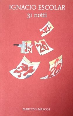 No, non impiegherete un mese a leggere 31 notti di Ignacio Escolar, appena mandato in libreria da Marcos y Marcos. Garantisco che vi basterà un pomeriggio: gli altrettanti capitoletti che lo compongono scorrono via uno dopo l’altro e appena posate il libro per dedicarvi ad altro, vi prende la voglia di andare avanti per vedere come finirà l’avventura del protagonista.