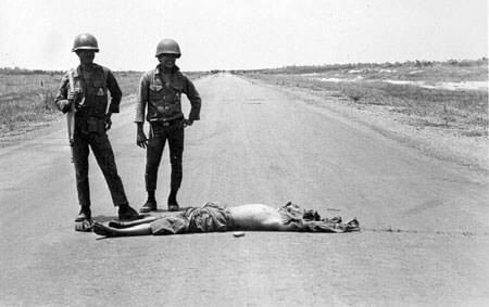 Soldati sudvietnamiti in posa dopo l’uccisione di un guerrigliero (1972)
