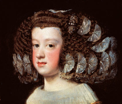 Una ventina d’anni dopo (siamo nel 1677) Juan Carreño de Mirana rappresentò Mariana, ormai regina, vestita a lutto, simile a una suora. Dal Metropolitan Museum di New York è arrivata l’Infanta Maria Teresa di Spagna, eseguita da Velázquez tra il 1651 e il 1654. Filippo IV inviò diversi ritratti della giovane figlia alle principali corti europee per avviare contatti pre-matrimoniali. Il ritratto dell’Infanta Margherita d’Austria conservato al Prado era fino a poco tempo fa considerato l’ultima opera di Velázquez, rimasta incompiuta e terminata da del Mazo, a cui invece viene ora attribuita per intero.