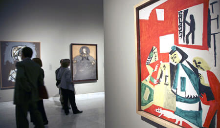Nel 1968 Picasso donava al Museu di Barcellona che prendeva il suo nome cinquantotto opere, tutte realizzate nello studio della sua Villa La Californie a Cannes. Di queste, quarantaquattro sono interpretazioni del dipinto di Velázquez: dieci trattano della composizione originale nella sua interezza; tre fanno a meno di Velázquez e una non comprende né Velázquez né Maria Barbola (la nana in primo piano); un’altra rappresenta la composizione centrale e il resto è dedicato ai vari personaggi del dipinto originale. Di questi quattordici riproducono la figura dell’Infanta Margherita Maria. L’interpretazione picassiana del dipinto è un esauriente studio di ritmo, colore e movimento e un costante gioco di immaginazione nel quale l’artista ha modificato le personalità di numerosi dei suoi componenti. Comunque la fedeltà e il rispetto per l’atmosfera dell’originale sono evidenti in tutte le composizioni.Ora si passa al secondo blocco del percorso espositivo, con le sale D, E ed F. Vale la pena di soffermarsi attentamente davanti alla piccola stampa di Goya che può essere considerata come anello di congiunzione che lega i tre più grandi pittori spagnoli: Velázquez, Goya e Picasso.