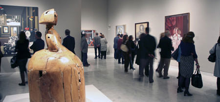 La stanza F s’intitola invece “Riflessioni”. Con l’ascesa dell’Arte Concettuale negli anni Sessanta e di nuovo negli anni Novanta, e sotto l’impatto del pensiero strutturalista e post-strutturalista, il fascino principale delle Meninas per gli artisti risiede nell’intricato gioco di percezione e riflesso del dipinto e nel ruolo ambiguo dell’immagine riflessa nello specchio. Fondamentale per questa concezione è stato il saggio di Foucault sulle Meninas, scritto nel 1966, che ebbe un profondo impatto su molti degli artisti presenti in questa mostra. I riflessi dello specchio sono diventati per alcuni degli artisti presenti in mostra il soggetto predominante della loro citazione e l’unica relazione fisica apparente con l’originale (si vedano i lavori di Bravo, Arikha, Craig-Martin). Negli anni Novanta gli artisti si sono maggiormente interessati all’aspetto teoretico piuttosto che a quello pittorico, aumentando la distanza dalla rassomiglianza fisica rispetto a Las Meninas, rinforzando in questo modo il dialogo tra la citazione e l’originale.