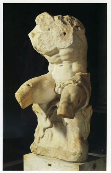 Ecco poi l’Apollo di Piombino issato su un alto basamento e più avanti le teste dei filosofi; l’Afrodite accovacciata e quella denominata Sosanda; la statua di Tritone. Una delle “star” della mostra è senza dubbio il celeberrimo Torso Belvedere che raffigurava Eracle, come dimostra la leontè, ovvero la pelle di leone. Per la prima volta è possibile confrontare de visu lo Spinario in marmo della Galleria Estense di Modena con quello in bronzo dei Musei Capitolini.