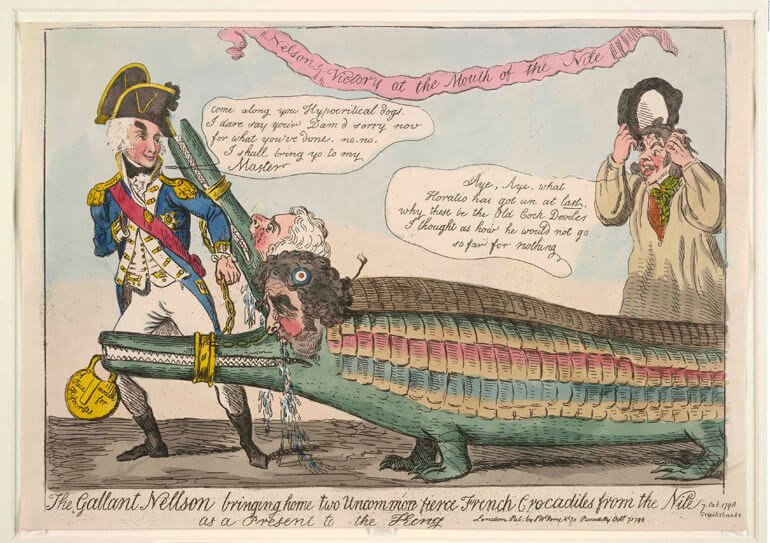 The Gallant Nelson Bringing Home Two Uncommon Fierce French Crocodiles, 1798