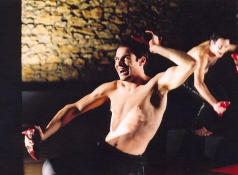 Ma quando si risveglia dalla furia omicida riconosce di essere stato giocato da Atena e comprende che il suo onore è irrimediabilmente compromesso. Si sente posto al di fuori della comunità di guerrieri, incapace di rientrarci a testa alta. Il suicidio rimane l’unica via percorribile per recuperare l’onore, anche se postumo. La versione inscenata da Theodoros Terzopoulos punta l’accento sulla pluralità di aspetti della vicenda: la tragedia è soltanto uno di essi. Nell’evolversi del racconto, infatti, il tono si fa sempre più parodistico, tanto che i coltelli impugnati dagli attori diventano a un certo punto scarpe rosse da donna. Ma col progredire del racconto emerge la solitudine dell’eroe, isolato dalla sua comunità che non gli ha voluto riconoscere quel valore in cui si identificava totalmente e abbandonato dalla divinità che non ammette perdono. Per sottolineare la violenza truculenta della strage il regista sceglie di infrangere il tabù del teatro classico facendo scorrere il sangue sulla scena.