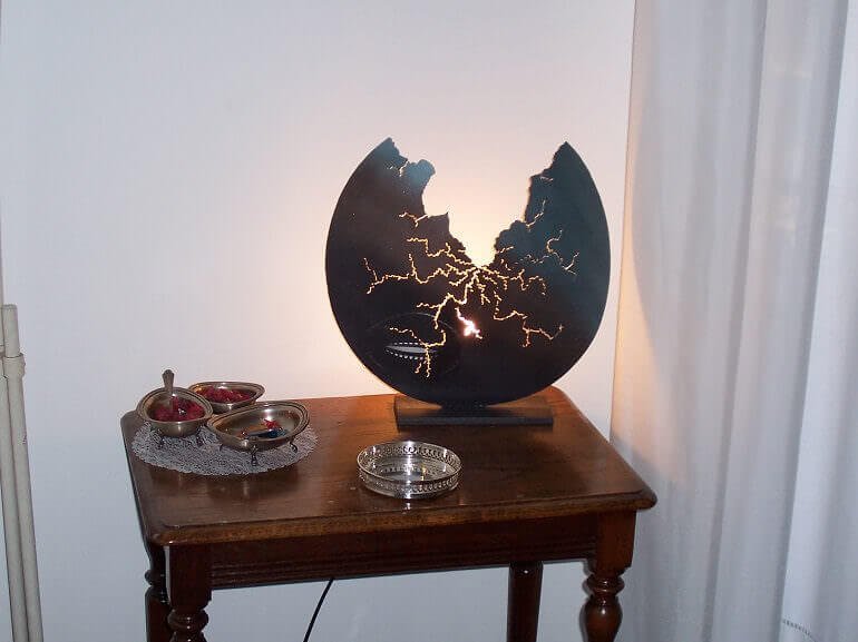 Inoltre verranno mostrate produzioni artistiche prodotte partendo da risorse minerali, come il vetro con interessanti prodotti per la tavola e per l’uso alimentare ed alcune opere risultato del riutilizzo e del riciclo di materiali avanzati dalla loro stessa produzione che andrebbero altrimenti smaltiti. Come per esempio mettono in atto i Fabbri Bergottini: dalle lamiere in ferro danno vita a lampade e complementi d’arredo, vecchie ghise vengono restaurate e inserite in tavoli, testate di letto o rampe di scale, vetro, pietra e altri materiali vengono integrati con il ferro per un perfetto utilizzo delle risorse che l’ambiente ci dona.