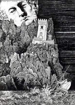 Più direttamente connessi ad un passo o ad un emistichio sono i 10 disegni in grafite su carta bianca. C’è “Tacito, seduto in verde zolla”, che sgorga d’impeto da “Le ricordanze”, quando il giovane contino “delle sere solea passar gran parte / mirando il cielo, ed ascoltando il canto / della rana rimota, alla campagna”. C’é “Dolce e chiara è la notte”, con cui inizia “La sera del dì di festa”. E subito dopo “Lontanando morire a poco a poco”, che chiude invece il piccolo idillio ed evoca un canto che si spegne a tarda notte stringendo il cuore di Giacomino ancora insonne. Ecco poi Naufragar, ultimo verbo dei quindici divini endecasillabi de “L’infinito”. Né manca “Or la squilla dà segno” de “Il sabato del villaggio”, con una delle due campane che vanta un privilegio speciale. È infatti dotata d’un batacchio d’eccezione, ossia un passerotto, e quindi ha le carte in regola per trillare con suoni più acuti del normale.