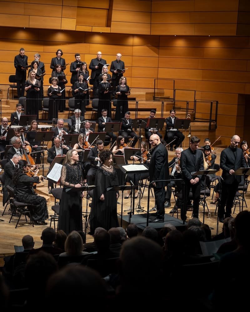 Posso però assicurare senza tema di smentite che il concerto dell’Orchestra I Pomeriggi Musicali con il Coro della Radiotelevisione Svizzera è stato un grandissimo successo: l’hanno testimoniato i calorosi applausi dei presenti che hanno occupato per la quasi totalità i posti del teatro (la sera prima riempito per il concerto della pianista Martha Argerich con l’Orchestra della Svizzera Italiana diretta da Charles Dutoit, generosamente ospitato per la momentanea chiusura della Sala Verdi del Conservatorio dove era in programma).