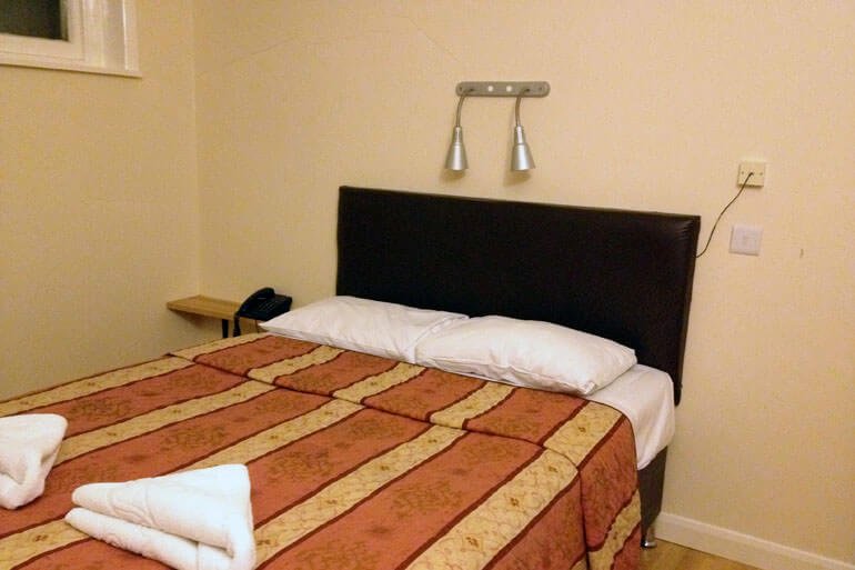 La scelta è caduta sull’Hotel Ruskin – B&B per un motivo semplicissimo: si trova esattamente dall’altro lato della strada rispetto al British Museum. Sorge infatti ai numeri 23/24 di Montague Street, nei pressi di Russell Square. Bisogna attraversare diagonalmente il parco, una volta usciti dall’omonima stazione metropolitana (il modo più veloce per raggiungerlo) e dopo pochi passi avremo sulla destra il celebre museo e sulla sinistra l’hotel. Diciamo subito che l’Hotel Ruskin ha poche pretese e non può competere in charme con i vicini più blasonati (una volta ho dormito all’Hotel Russell, un Quattro Stelle dalla lunga storia: un altro pianeta!), tuttavia accoglie gli ospiti con una struttura più che dignitosa. La mia camera, la B2, era nel seminterrato; un letto da una piazza e mezza, un lavandino, una stretta scrivania con il bollitore dell’acqua per prepararsi il tè e l’asciugacapelli appeso alla parete. Pulita e piuttosto spaziosa, per gli standard londinesi. Il bagno con doccia, condiviso con gli altri ospiti, si trova subito fuori dalla porta, sotto la scala.
