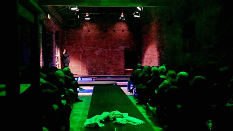 Lo spettacolo si apre con lo sciabordio dei canali della Serenissima, mentre i mattoni rossi della Cavallerizza sono una quinta perfetta per l’ebreo in fuga nella sua stessa città. Il tema dell’odio religioso si intreccia con quelli dell’identità e della libertà. Shylock ripercorre le storie del nonno e del padre, sempre attenti a rispettare la tradizione del Sabato con candele e fiori, fiori e candele e sempre attivi nel lavoro, perché “quando non si ruba, ogni guadagno è sacrosanto”. L’ha dimostrato il patriarca Giacobbe che raggirò il crudele suocero Labano con un’astuzia (è il tema dello sfondo del desktop del mio computer in ufficio, se qualcuno lo vuol sapere…).
