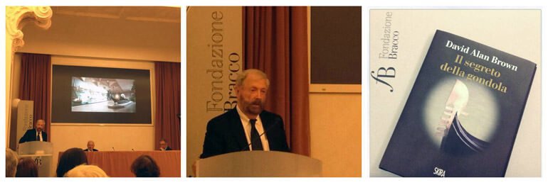 Ieri sera, al Teatrino della Fondazione Bracco a Milano, è stato presentato il libro Il segreto della gondola di David Alan Brown, edito da Skira nella collana Narrativa. A introdurre l’ospite ci ha pensato Fabio Isman, giornalista de Il Messaggero, che ha fornito al folto pubblico in sala le principali informazioni sulla carriera professionale di Brown, “curator” della sezione di pittura italiana e spagnola della National Gallery di Washington, ricordando le più importanti mostre che ha organizzato. Quella su Andrea Solario era un capolavoro assoluto, a suo dire. “Grandissimo studioso”, Brown per la prima volta si è cimentato con la narrativa, proprio prendendo spunto da una “sua” mostra, quella dedicata a Canaletto e ai suoi rivali.