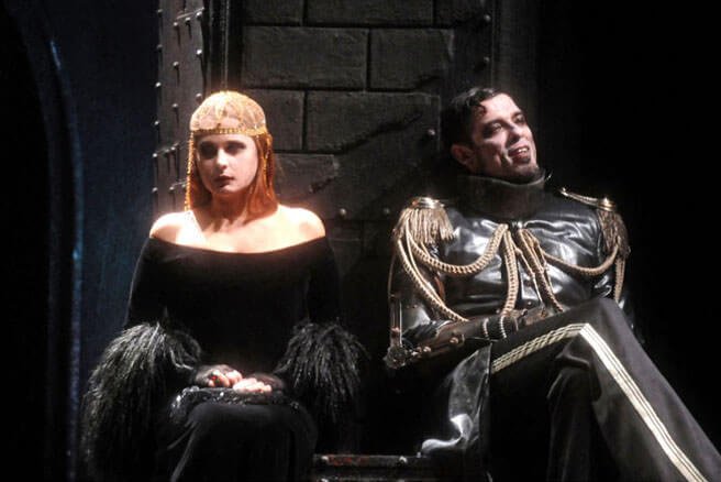 Tanta roba non soltanto per l’innegabile densità e complessità del testo scespiriano che ne fanno uno dei vertici assoluti della produzione del Bardo (ed è consigliabile, prima di affrontare le due ore e mezza dello spettacolo, ripassarsi almeno il riassunto della vicenda, perché quando arriverà la tirata della Regina Margherita nel IV atto “io avevo un Edoardo, ma un Riccardo lo uccise; io avevo un Enrico, ma un Riccardo lo uccise; tu avevi un Edoardo, ma un Riccardo lo uccise; tu avevi un Riccardo, ma un Riccardo lo uccise” non ci si perda come avviene studiando l’inestricabile rete della genealogia della dinastia Giulio-Claudia in cui quasi tutti i membri si chiamano Nerone…). Ma soprattutto perché Gassmann ha scelto di giocare con diversi registri. Ha mescolato ingredienti di ottima qualità (a partire ovviamente dal testo), ma in dosaggi che a volte mettono in dubbio la perfetta riuscita della ricetta.
