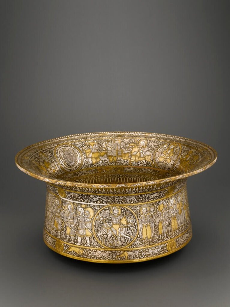 Ma prima di arrivarci si ammirano anche altri esemplari, come il bacino realizzato per Ugo IV signore di Lusignano e re di Cipro e di Gerusalemme, quello a nome di Shihab al-Din Ahmad ibn Baktimur e l’esemplare a nome del sultano Qaytbay (prestato dal Victoria & Albert Museum di Londra).