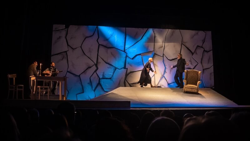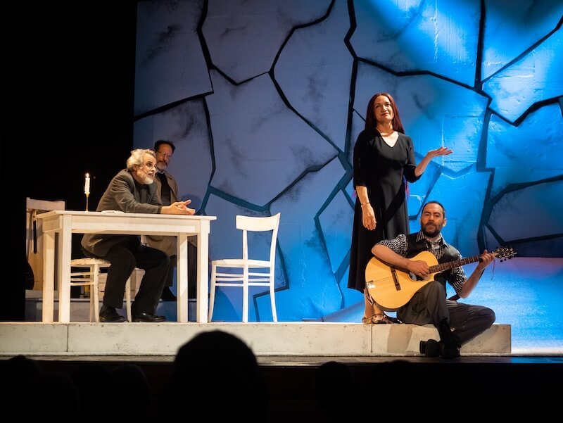 In quella che è una trenodia balcanica – ma un canto funebre pieno di vita! – promesse e giuramenti, momenti felici e le tappe di una malattia che non lascia scampo sono presentati dagli interpreti con una intensità che coinvolge il pubblico (lo dimostra anche l’applauso che stava per partire a scena aperta alla fine della “canzone del distacco”). In particolare Crippa e Nisi uniscono le storie dei rispettivi personaggi con intrecci di mani, di parole e di sguardi. Di lei sorprende l’abilità canora (ma anche le movenze nel ballare il sirtaki), di lui la variazione dei toni…