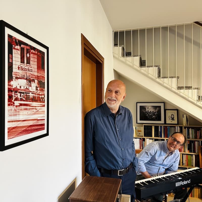 E proprio nel percorso espositivo della mostra mezzaghese era inserita Milano da bere che ieri Simone ha appeso alla parete del nostro soggiorno. La foto è ispirata agli anni Ottanta, quando le persone avevano ripreso a uscire e la città tornava a respirare dopo la cappa del terrorismo. Raffigura lo storico Bar Magenta, a due passi dall’Università Cattolica (frequentata da Simone, che ha ricordato l’esame di teologia con don Giussani, il fondatore di CL) e dalla stazione Cadorna.