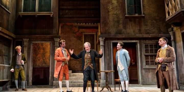Perfino l’aristocratica Venezia, Serenissima signora dei mari, si riduce a teatrino quando la lente del drammaturgo restringe il campo, anzi il campiello. La scenografia, davvero splendida, disegnata (insieme ai costumi) da Lorenzo Cutùli per La Bottega del Caffè di Goldoni nell’allestimento di Maurizio Scaparro – in scena al Piccolo Teatro Grassi di Milano fino al…