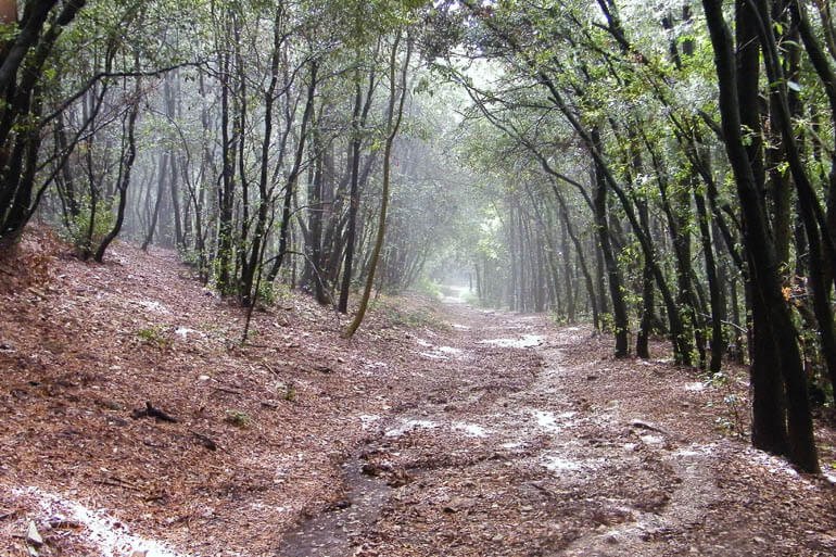Lascio la macchina al parcheggio dell’ex Convento dei Camaldolesi e imbocco il sentiero 301 un po’ più in basso (ore 14.00):