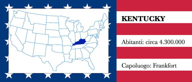 Il viaggio virtuale di ALIBI negli Stati Uniti prosegue in una sorta di zigzag: un avanti e indietro che da qualche settimana ci àncora nella parte centrale del Paese. Questa volta torniamo verso est, spostandoci dal Kansas per approdare in Kentucky. Lo Stato ha un po’ più di 4 milioni di abitanti, di cui meno di 30 mila (su una stima del 2007) risiedono nel capoluogo Frankfort. La città più popolosa è però Louisville che supera il mezzo milione di abitanti. È lì che sono nati, tra gli altri, il pugile Cassius Clay (Muhammad Ali), l’attrice Premio Oscar Jennifer Lawrence e il regista Gus Van Sant.